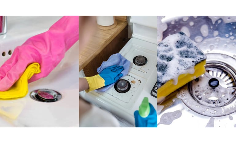 gas stove, washbasen and sink cleaning